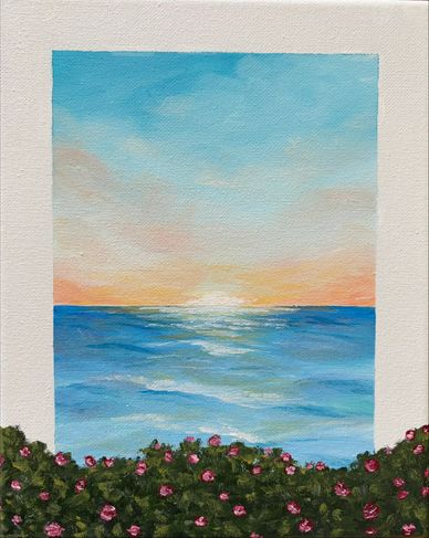 You won’t believe you painted this beautiful floral framed seascape at the end of this event!!