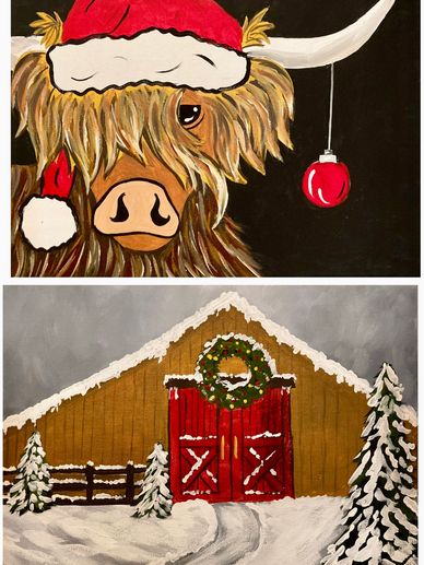 Get ready to sip, paint, and soak in the holiday spirit during our festive Christmas Paint & Sip Experience at The Cider House! Paint while enjoying the view of the Orchard waterfront. This event will be a ‘Painters Choice’. When you sign up for this event you’ll choose to either paint a charming winter barn scene or a whimsical Highland cow decked out in festive attire. With a paintbrush in one hand and your favorite holiday beverage in the other, you’ll enjoy laughter, relaxation, and plenty of Christmas magic.